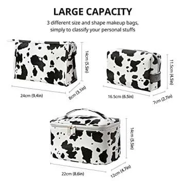 HooOriana Makeup Bag Set Cosmetic Bag 3 Pieces Small Makeup Bags for Women with Cow Animal Milk Mini Cute style Travel Pouch Bags