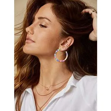 Hoop Earrings For Woman Rainbow Heishi Beaded Open Hoop Earrings Bohemian African Vinyl Disc Stud Earrings Hoop Surfer Beach Jewelry (colorful)