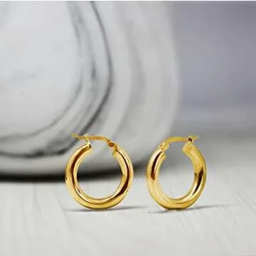 Available in a variety of sizes ranging from 15mm to 50mm in diameter and thickness options from thin to chunky, there’s a perfect pair for every occasion. Choose from three stunning color options: classic Silver, eye-catching Yellow Gold, or trendy Rose Gold Flashed Sterling Silver. Each design is lightweight and high polished, ensuring they are suitable for all-day wear.