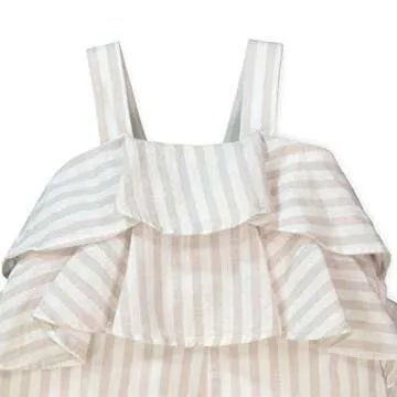 Show moreAn adorable blend of comfort and style, our ruffled jumpsuit is a must-have for little fashionistas this spring and summer! Crafted from a premium 55% Linen and 45% Organic Cotton mix, this jumpsuit offers a breathable experience perfect for those warm days. Its playful tiered ruffles bring a whimsical touch, while the convenient side zipper ensures easy on and off without the fuss. The wide-leg design not only keeps kids comfortable as they explore but also allows for a graceful silhouette that looks perfect for any occasion, whether it’s a family gathering or a fun day out.
