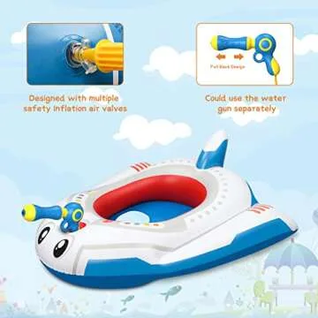 HopeRock Pool Toys for Kids Ages 4-8 - Inflatable Toddler Pool Float for Boys and Girls (Aged 3-12) - Fun Family Outdoor Toys with Water Gun Ride-on Airplane Swimming Pool Toy