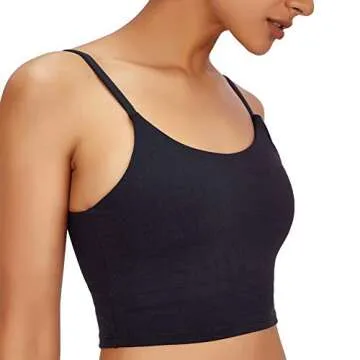Hopgo Women's Longline Sports Bra Wirefree Padded Medium Support Yoga Tops Gym Running Workout Tank Tops Black US M