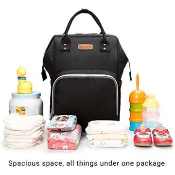 hopopower Diaper Bag Backpack, Multifunction Travel Backpack with USB Charging Port Best Gifts for Mom Baby Shower Baby Nappy Changing Bags, Roomy and Waterproof, Black