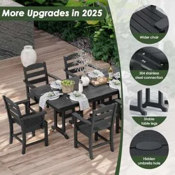 Unlike standard wooden or metal furniture, which can suffer from rot or rust, the HOPUBUY patio dining set stands out due to its unique HDPE construction. Many outdoor furniture alternatives require constant maintenance or protective coverings, but this set's all-weather design means you can leave it outside year-round without compromising its integrity. Additionally, the realistic wood finish offers a touch of elegance that sets it apart from typical plastic furniture.