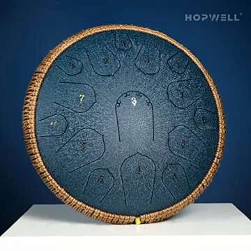 HOPWELL Steel Tongue Drum - 14 Inch 15 Note Tongue Drum - Hand Pan Drum with Music Book, Handpan Drum Mallets and Carry Bag, D Major (Navy Blue)