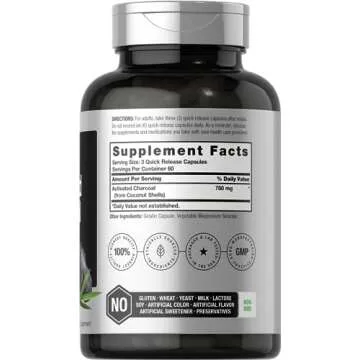Show moreDiscover the exceptional benefits of Activated Charcoal by Horbaach, a premium supplement designed to elevate your health regimen. Derived from coconut shells, this fine black powder is renowned for its absorbent properties, making it the perfect choice for detoxification and digestive support. Each serving boasts an impressive 780 mg of Activated Charcoal, conveniently packaged in easy-to-swallow capsules, ensuring you receive maximum benefit without hassle.