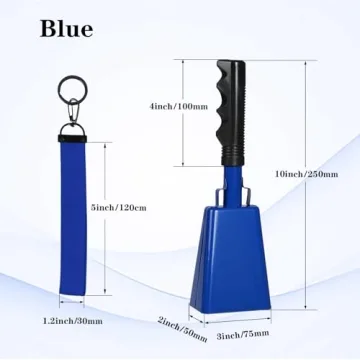 Show moreIntroducing the Hordolry 10-inch Metal Cowbells, the perfect companion for every sporting event, party, and outdoor gathering. Crafted from high-strength metal, these cowbells are coated with a stunning blue gloss that not only captivates the eye but also ensures corrosion and rust resistance. Weighing only 0.7lb (320g), with a comfortable handle design made from safe PVC plastic, these cowbells are as practical as they are eye-catching, allowing you to make your voice heard without making your wrist tired! Whether you’re cheering at a football game or celebrating at a wedding, this ergonomically designed cowbell is built for performance. Sized at approximately 10" x 3" x 2" (25cm x 7.5cm x 5cm), it fits perfectly in your hand, making it easy to grip and use for extended periods.