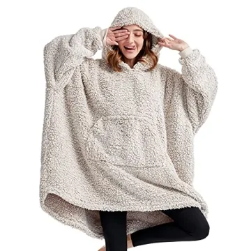 Show more Experience the epitome of comfort with the HORIMOTE HOME Cozy Sherpa Wearable Snuggle Blanket Hoodie. Crafted for those chilly days and cozy nights, this oversized blanket hoodie transcends traditional loungewear, enveloping you in a layer of luxurious warmth. Made from high-quality sherpa fleece, you’ll feel like you’re being gently wrapped in fur—perfect for snuggling up on the couch or stepping out in style. Its soft, lightweight fabric ensures that you won't feel weighed down, allowing you to move freely and comfortably whether you're lounging indoors or enjoying an outdoor adventure.