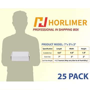 HORLIMER 7x5x2 inches Shipping Boxes Set of 25, White Corrugated Cardboard Box Literature Mailer