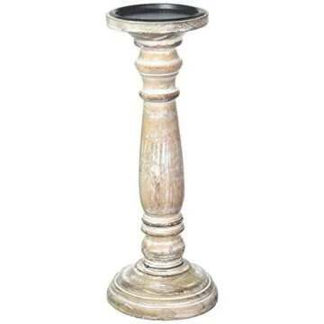 Hosley's 12 Inch High Wood Pillar Distress Finish Candleholder. Ideal Gift for Wedding, Party, Home, Spa, Reiki, Aromatherapy, Votive Candle Gardens O3