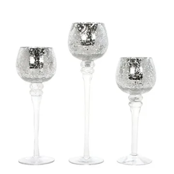 Show moreElevate your home decor with the exquisite Hosley® Set of 3 Crackle Metallic Glass Tealight Holders in stunning heights of 12, 10, and 9 inches. These tealight holders are crafted to transform any space into a haven of elegance and charm. With their unique crackle metallic glass finish, each holder reflects light in enchanting ways, casting beautiful patterns that will mesmerize and uplift your surroundings. Whether adorned with flickering tealights or left as chic standalone pieces, they seamlessly blend with both contemporary and traditional decor styles, making them a versatile addition to your home.