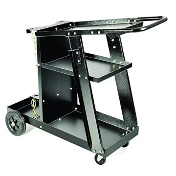 The cart is built from heavy-duty materials and is designed to handle the weight of modern welding machines effectively.