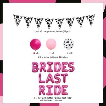 Hot Pink Brides Last Ride Nashville Bachelorette Party Decorations Western Themed Bachelorette Party Decorations for Cowgirl Bachelorette Brides Last Ride Cow Printing Balloons Cow Pennant Flags