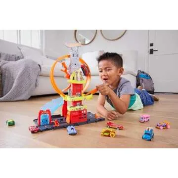 When it comes to toy car track sets, the Hot Wheels City Super Loop Fire Station stands above the rest with its unique combination of engaging elements and superior design. While other brands may offer basic tracks or cars, this set emphasizes both creativity and excitement, thanks to its adjustable features and the entirety of Hot Wheels City connections, allowing for endless expansion. Unlike basic tracks, this set includes thematic play elements that enhance the experience of imaginative play, making it a premium choice among competitive products.