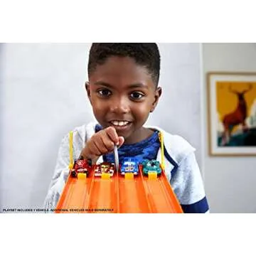 Hot Wheels Toy Car Track Set, 4-Lane Elimination Race with Fair-Start Launcher & 1 Toy Car in 1:64 Scale