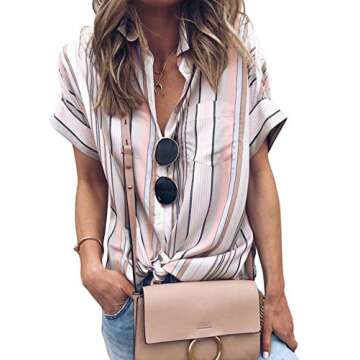 Show moreIntroducing the HOTAPEI Women's Summer Casual V Neck Striped Cuffed Sleeve Button Down Collar Chiffon Shirt, the essential addition to your wardrobe this summer! Combining style, comfort, and versatility, this blouse is designed specifically for the modern woman who values both aesthetics and practicality. Made from high-quality chiffon, it’s a lightweight, breathable option that guarantees you'll stay comfortable during warmer months. With its chic striped design, this shirt effortlessly transitions from casual outings to more dressy occasions. Whether you pair it with shorts for a day at the beach or dress it up with jeans for an evening out, this shirt promises to deliver a stunning look.