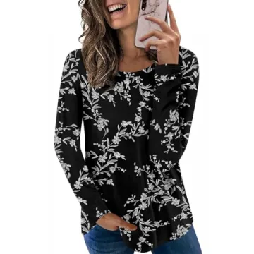 HOTGIFT Women's Casual Long Sleeve Crewneck Tunics - Comfortable & Stylish