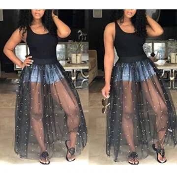 HOTGIRL Women's Maxi Dress Sheer Beach Cover Up Plus Size Casual Summer See Through Dresses for Women Sexy Clubwear Mesh Black XL