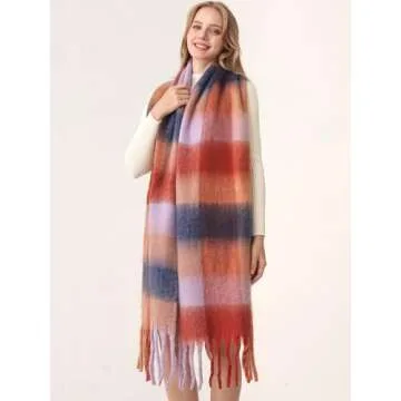 HOTIAN Women's Large Scarf Colorful Chunky Plaid Scarves Soft Winter Thick Tassel Warm Wrap Shawl