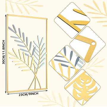 Hotop 3 Pcs Wall Metal Leaf Wall Decor Modern Minimalist Metal Abstract Line Wall Art Ginkgo Leaf with Frame Decorative Wall Decor for Living Room Bedroom Office, 11.82 x 8.27 in(Gold and Dust Blue)
