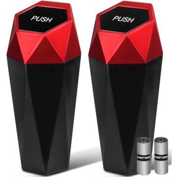 Show moreIntroducing the HOTOR Car Trash Can with Lid, the ultimate solution for anyone looking to maintain a clean and organized vehicle! Designed to fit perfectly in cup holders, car door pockets, or even seat back pockets, this compact trash can (dimensions: 8.1x3.6x3.8 inches) is ideal for managing clutter during road trips or daily commutes. Say goodbye to unsightly wrappers and discarded napkins—this versatile bin also doubles as a stylish organizer for your home or office. Forget about flimsy, unattractive trash bins; with its unique diamond-shaped design, the HOTOR Car Trash Can enhances your vehicle’s aesthetic while ensuring practicality.