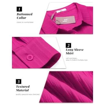 When comparing the HOTOUCH Women Collared Button Down Shirt to other brands, its unique textured fabric and casual fit stand out. Many competitors offer standard button-downs that lack the vibrancy and comfort of this blouse. Unlike other shirts that may be restrictive or rough, the HOTOUCH shirt combines fashionable design with a soft, airy feel. While other brands might provide limited sizing and colors, HOTOUCH offers a range of colors—like hot pink, light blue, black, and more—ensuring you can express your style effortlessly.