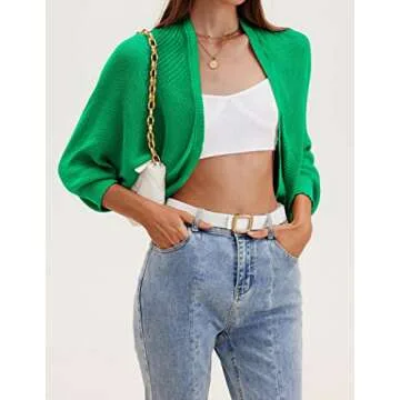 Show moreThe HOTOUCH Women’s Cardigan Open Front Shrugs are the perfect blend of comfort, style, and versatility. Made from high-quality, cool knit fabric, these lightweight and breathable cardigans are soft to the touch, making them a cozy addition to your wardrobe. Whether you need a chic layer for the office or a fashionable companion for an evening out, this knitted bolero jacket fits the bill. With a stylish long batwing sleeve design, you can look effortlessly elegant while enjoying the freedom of movement these shrugs provide. Plus, the unique irregular hollow out design ensures you stand out in any crowd, and it comes in stunning green, black, and white variations for you to choose from.