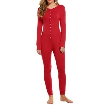 HOTOUCH Women Thermal Sets Womens 2 Pcs Underwear Slimming Top & Bottom Pajama Red S