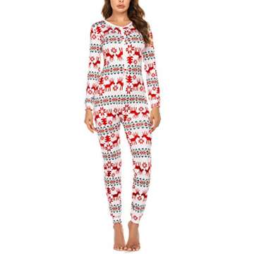 HOTOUCH Womens Holiday Onesie Long Sleeve Onesie Union Suit Thermal Underwear Set Sleepwear Pajama Jumpsuit Union (S, Christimas)