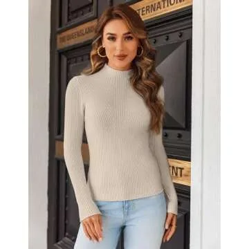 HOTOUCH Womens Turtleneck Sweater Beige Fitted Long Sleeve Tops Holiday Cute Knitted Shirt Lightweight Mock Neck Basic Layering Winter Sweaters for Women 2025 Trendy