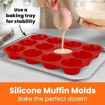 HOTPOP Silicone Muffin Mold for on Top of Baking Sheet, 12 Muffins (Red) - Muffin Pans Nonstick 12 Spots, Silicone Muffin Pans for Baking, Muffin Tray, Silicone Cupcake Molds, Cupcake Baking Pan