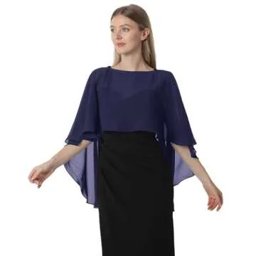 Hotshawl Capelets for women Chiffon Cape Shawls and Wraps for Evening Dress Wedding Capes Cover Up (Navy)