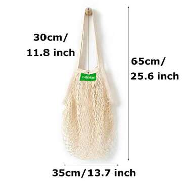 Show moreIntroducing the Hotshine Pack of 5 Portable/Reusable/Washable Cotton Mesh String Organic Organizer Shopping Handbag, a perfect blend of sustainability, strength, and style. Made from 100% cotton, these eco-friendly bags are designed to replace your traditional paper and plastic bags while significantly reducing your environmental footprint. The lightweight mesh design allows you to easily access your items while shopping at farmers’ markets, grocery stores, or produce markets. With our long handles, they offer comfort and convenience as you embark on your shopping journeys.