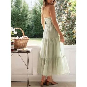 Show more Introducing the HOULENGS Women's 2024 Summer Sleeveless Halter Neck Boho Long Dress - the perfect blend of elegance, comfort, and style. Crafted from high-quality polyester, this dress features a soft, lightweight, and skin-friendly fabric that lays beautifully against your body, making it the ideal choice for warm summer days. Its stylish halter neck design coupled with a deep V-neck adds a hint of allure, while the backless silhouette showcases a chic and modern edge. The ruched high waist creates a flattering effect, and the tiered design combined with a ruffle hem adds movement that sways with you, ensuring you turn heads wherever you go.