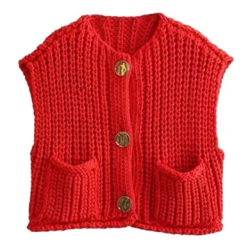 Show moreIntroducing the HOULENGS Women’s Cropped Sweater Vest, a stylish and versatile addition to your wardrobe that combines warmth, comfort, and trendy design. Made from high-quality polyester, this knitted vest is incredibly soft, skin-friendly, and perfect for layering in any season. Its chunky knit design offers a cozy feel, making it ideal for those slightly cooler summer nights by the lake or for a chic day out. The button down feature elevates your outfit and adds a touch of sophistication. Available in vibrant colors like red, this vest is not just a clothing item, but a mode of expression for style enthusiasts.
