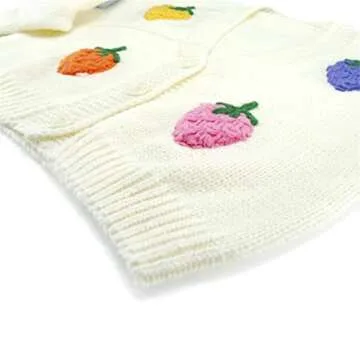 HOULENGS Women's Kawaii Strawberry Print Button Down Crop Cardigan Sweater Long Sleeve V Neck Sweater Coat White One Size