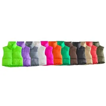 Show more Introducing the Women's Cropped Puffer Vest, the ultimate blend of style and functionality that every woman needs in her wardrobe. This trendy outerwear features a sleek cropped design that hugs your waist perfectly, providing both warmth and a fashionable silhouette. Made by a trusted brand known for its commitment to quality, this vest is lightweight yet incredibly warm, making it perfect for chilly fall days and winter nights.