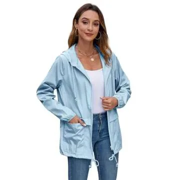 Hount Womans Packable Sport Rain Jackets with Pockets Active Outdoor Sport Windbreakers (Light Blue, S)