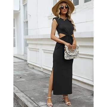 Hount Women's Summer Sleeveless Dress Cutout Crew Neck Bodycon Maxi Dress with Side Slit Black