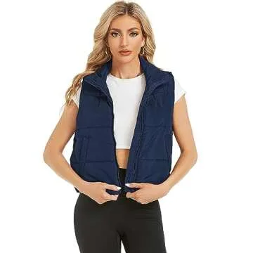Hount Womens Winter Puffer Vest Lightweight Sleeveless Padded Gilet Qulilted Stand Collar Outwear Vest with Pockets (XL, Navy Blue)