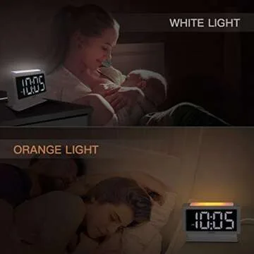 Show more This sleek, modern alarm clock combines functionality and design, making it the perfect bedside companion. With its large, easy-to-read numbers, it ensures that you can check the time without straining your eyes. The adjustable brightness feature allows you to customize the display, transitioning from a bright white light to a soft pale blue, perfect for any lighting preference. An innovative night light doubles as a snooze button, providing ambient lighting without disturbing your sleep. This clock also includes three USB charging ports, giving you the convenience of charging your devices right at your bedside.