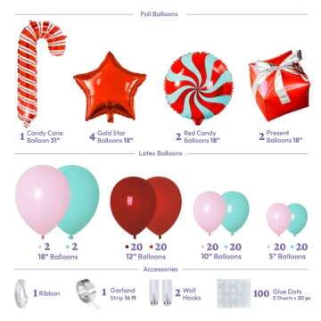 HOUSE OF PARTY Christmas Balloons Arch Kit in Red, Pink & Mint Colors