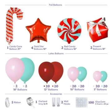 Show moreCelebrate the joys of the holiday season with the HOUSE OF PARTY Christmas Balloons in striking hues of Red, Pink, and Mint! This beautifully curated balloon arch kit is designed to infuse your Christmas festivities with vibrant color and a magical atmosphere. Each balloon promises to elevate your celebrations, making them more festive and photogenic. Crafted from premium natural latex, these balloons are not only eye-catching but also durable enough to last throughout the season—no more worrying about unexpected pops in the middle of your party!