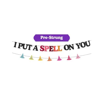 HOUSE OF PARTY I Put A Spell On You Felt Banner, 10ft Pre-Strung Hocus Pocus Banner Witch Hat Banner, Hocus Pocus Halloween Decorations, Witch Party Decorations, Halloween Witch Banner for Mantle