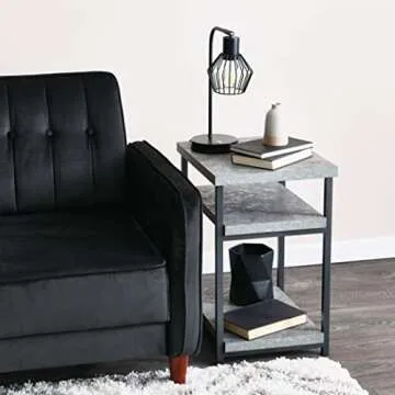 Household Essentials Side Table | End Table with Shelf for Storage | Faux Slate Concrete 17.9D x 23.6W x 17.46H in