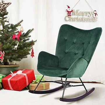 HouseInBox Rocking Chair, Soft Velvet Upholstered Modern Armchair with Solid Wood Legs, Dark Green