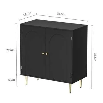 Show more Introducing the **Housoul Sideboard Buffet with 2 Doors**, a multifunctional storage solution that combines style and practicality for every home. Measuring at **31.5"W x 15.7"D x 33.5"H**, this modern accent cabinet features a sleek arch-shape design than enhances your décor while offering ample storage. It’s crafted from **CARB/EPA certified sturdy wood**, ensuring both durability and stability. The elegant black finish, highlighted by golden handles, adds a touch of casual luxury, making it a perfect addition to any room. You’ll love the generous storage space with three height-adjustable shelves, allowing you to customize the interior based on your needs - whether organizing dining necessities, displaying your favorite dishes, or even storing office supplies, this cabinet meets all your requirements.
