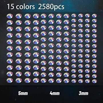 Each sheet offers three different sizes: 3mm (1080pcs), 4mm (840pcs), 5mm (660pcs), allowing you to mix and match to your heart's content. The possibilities are endless when it comes to decorating special occasions such as birthdays, weddings, and art projects. Whether you want to bling out your Sweet 16 candles or create a stunning gift for a friend, these rhinestones are the ideal solution.