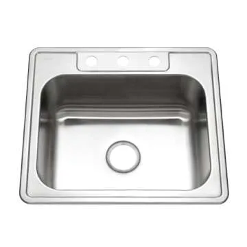 Show moreIntroducing the **Houzer Stainless Steel 2522-8BS3-1 Glowtone Series Kitchen Sink**, a versatile and stylish sink that combines functionality with modern design. Crafted from **20 gauge premium grade T-304 stainless steel**, this sink ensures durability and long-lasting performance against water, food, and chemicals. Its sleek satin finish not only adds an elegant touch to your kitchen but also protects against corrosion and fading over time, keeping your sink looking new. Designed to fit effortlessly into a **30" cabinet**, it provides a perfect solution for your kitchen, bar, RV, or outdoor setting.