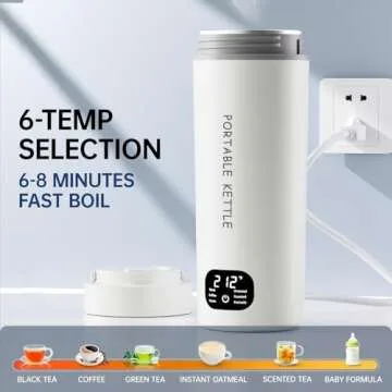 Show moreIntroducing the HOWDIANQY Dual Voltage Portable Electric Kettle—your perfect travel companion designed to cater to your diverse hot beverage needs. With its advanced LCD touch screen interface, you can effortlessly select from six precise temperature settings to achieve your ideal drink. Whether you need boiling water for black tea at 212°F or a gentle warm-up for baby formula at 113°F, this kettle ensures optimal heating for every occasion. Crafted from 316 stainless steel, it not only delivers exceptional performance but also promotes safety with its BPA-free construction, making it an excellent choice for health-conscious users.